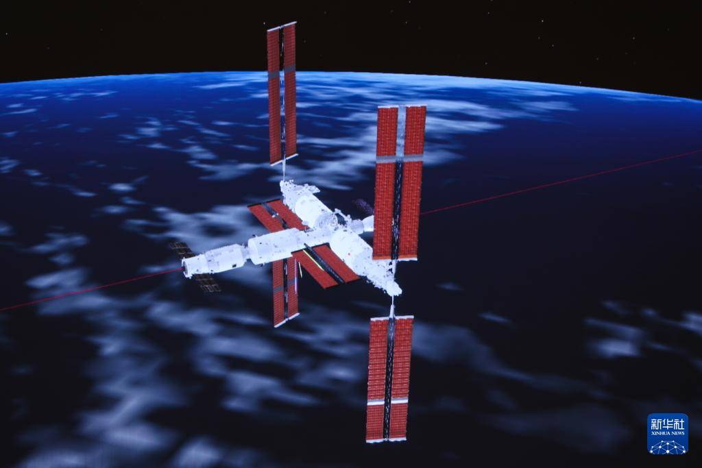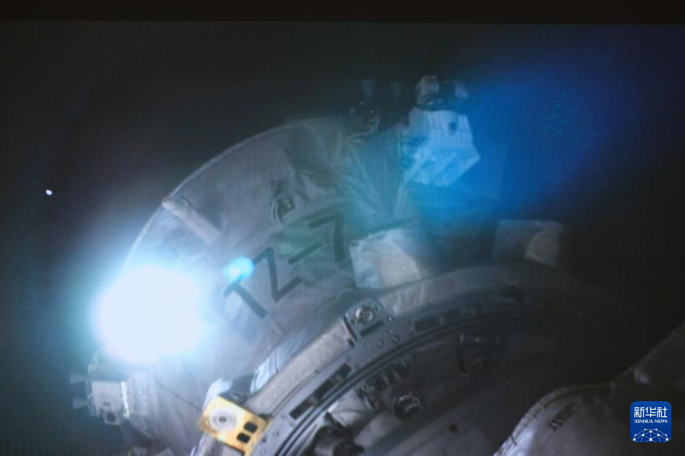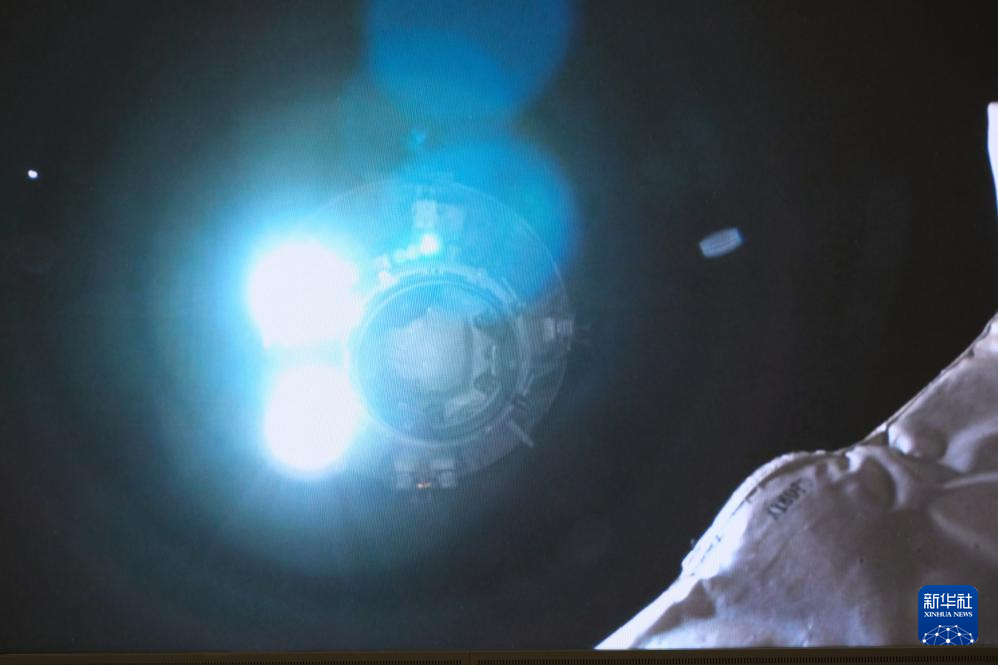 1月18日在北京航天飞行控制中心拍摄的天舟七号货运飞船向空间站组合体靠拢的画面。