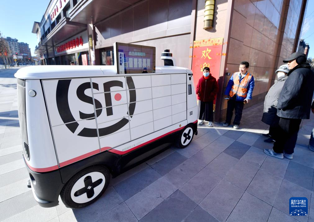 1月22日,无人驾驶配送车在派送邮件。