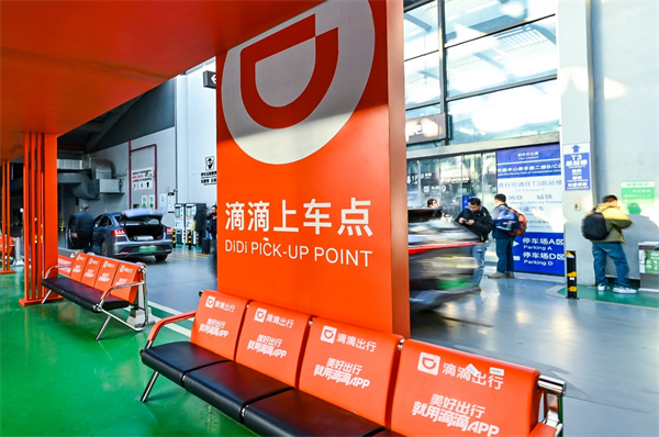 图为滴滴在部分城市机场、火车站设立的网约车专属候车区