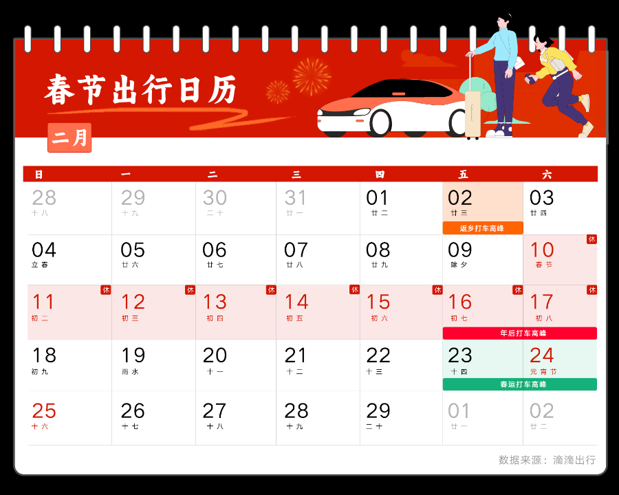 节前打车高峰较火车出行高峰更早,异地打车需求预计上涨50%