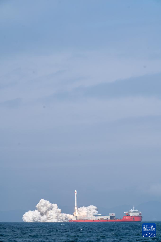 2月3日11时06分,我国太原卫星发射中心在广东阳江附近海域使用捷龙三号运载火箭,成功将DRO-L星、智星二号A星、东方慧眼高分01星、威海壹号01-02星、星时代-18-20星以及NEXSAT-1星等9颗卫星发射升空,卫星顺利进入预定轨道,发射任务获得圆满成功。新华社发(安迪 摄)