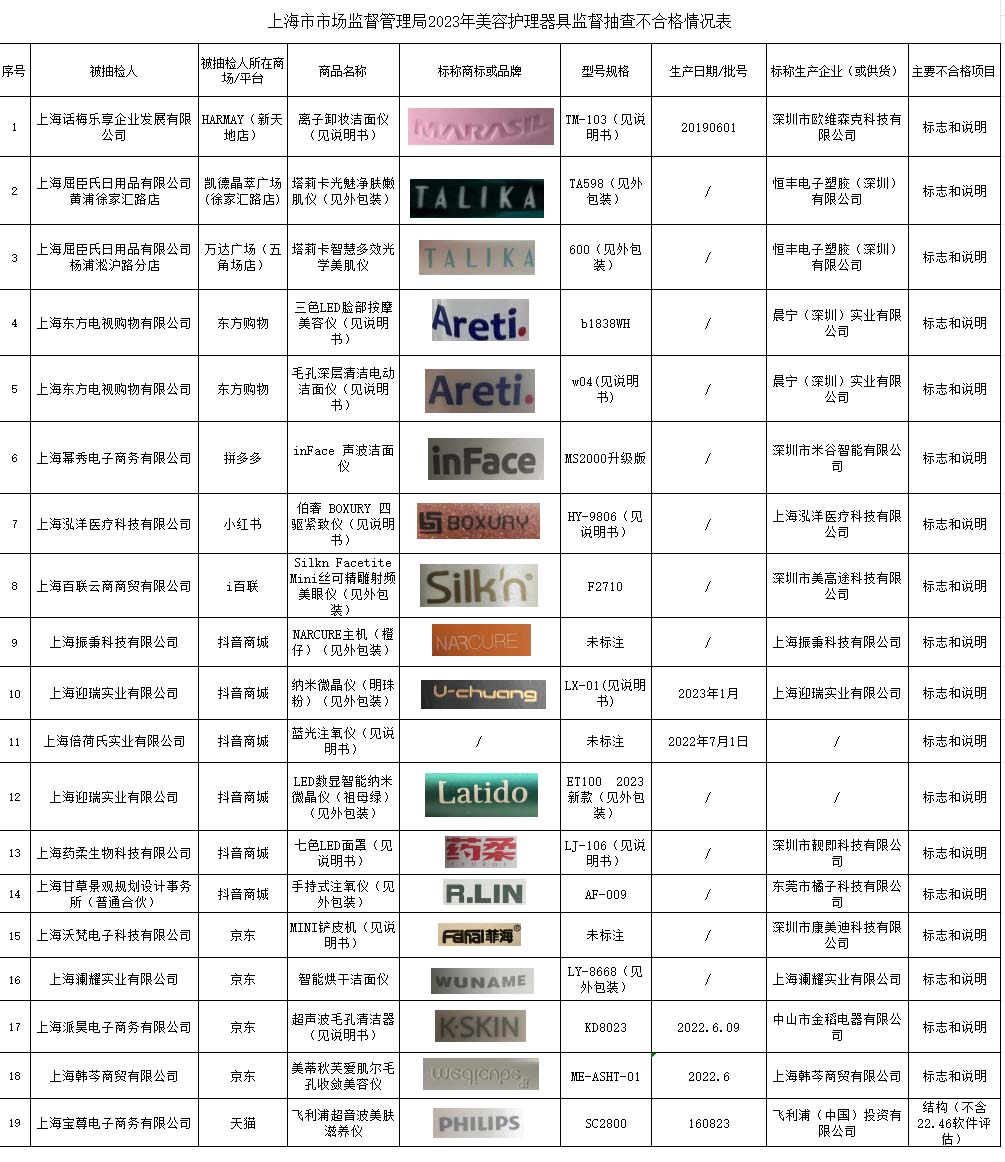 上海市市场监管局发布美容护理器具监督抽查情况