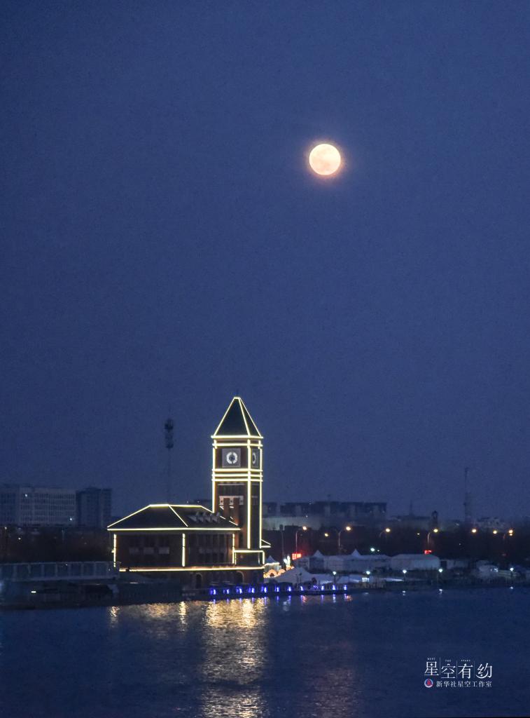 天津市星空摄影爱好者杨婧2024年2月24日在天津东丽区吉兆桥拍摄的一轮元宵月。(本人供图)