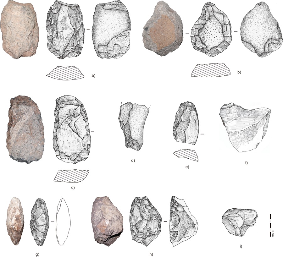 云南省临沧市永德县大岩房旧石器遗址和平文化石制品组合。(云南省文物考古研究所供图)