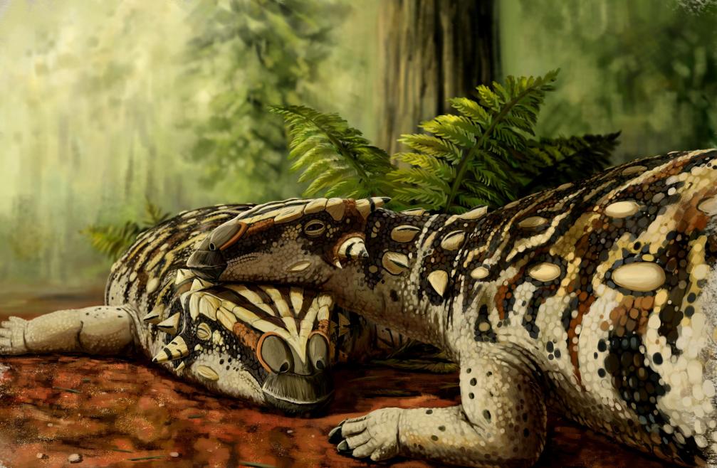 甲龙是一类草食性恐龙,生活在晚白垩世的北美洲和亚洲。其最大特点是周身覆盖有大量骨板,好似身着“铠甲”,因而常被称为“坦克龙”。其中的甲龙亚科成员尺寸较大、头身较宽,尾巴末端有发达的尾锤。