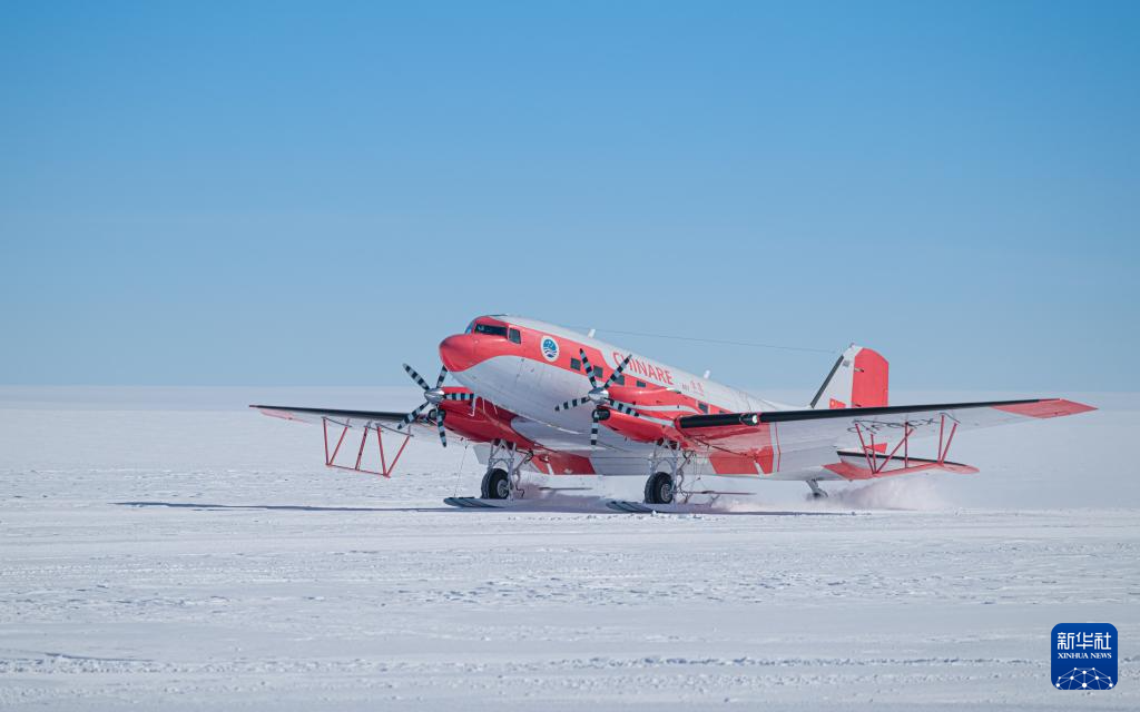 1月3日,“雪鹰601”降落在南极中山冰雪机场。新华社发(裴文悦摄)