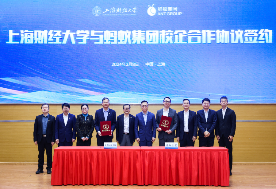 3月8日,上海财经大学与蚂蚁集团在上海签署校企合作协议,双方将联合共建“金融人工智能前沿实验室”,促进人工智能等前沿科技在财经、金融领域的创新应用,探索规范发展路径,提升高校人才培养水平,持续助力上海国际金融科技中心建设。