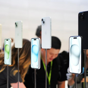 2023年9月12日,在美国加利福尼亚州丘珀蒂诺市举行的苹果新品发布会后,人们体验新品。 新华社记者 吴晓凌 摄