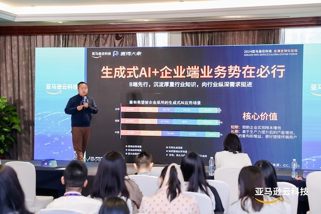 2024亚马逊云科技出海全球化峰会的主题为“无界向新,智链全球”。亚马逊云科技大中华区高管分享了过去一年中生成式 AI 如何帮助中国企业实现海外扩张的实践。ChatGPT去年年初爆火后,大模型热度持续至今,成为包括出海企业在内的企业首选智能创新引擎。国家数据局发布的统计数据显示,国内10亿参数规模以上的大模型数量已超过100个。赛博大象集团高级副总裁金治认为,全球范围内只有少数公司研发出的大模型获得市场认可,“创业公司与全球巨头竞争通用大模型意义不大,更应该聚焦大模型的应用创新,将大模型企业应用与企业需求紧密结合起来,解决实际问题。”