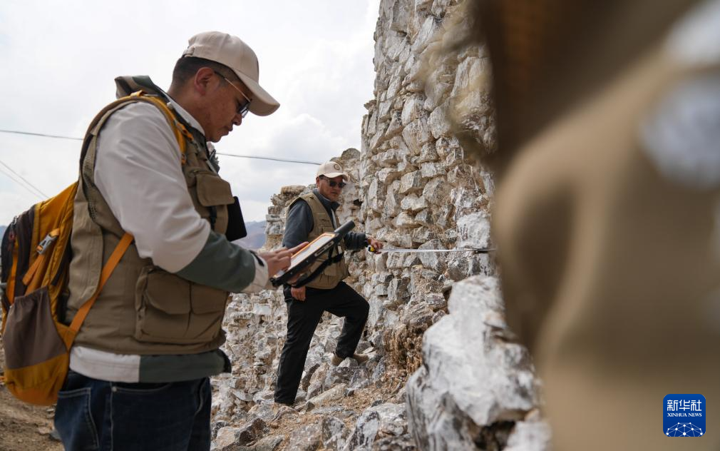 4月11日,普查人员在曲果岗塔群遗址现场开展数据采集。新华社记者 晋美多吉 摄