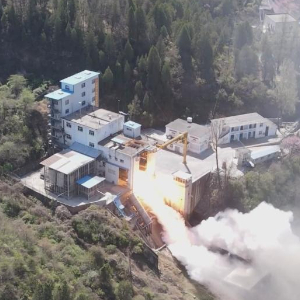 4月12日,130吨级可重复使用液氧煤油发动机进行两次起动地面点火试验的视频截图。(中国航天科技集团六院供图)