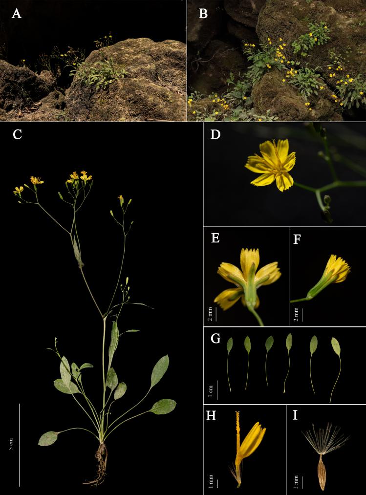 “去年3月,我们在马岭河峡谷进行野外考察时,开始关注到这种正在开黄花的菊科植物。”“马岭河小苦荬”的发现者贵州大学林学院李志博士介绍,该新种基生叶为匙形或长匙形,叶柄长约30毫米至55毫米;黄色花朵,头状花序,含6枚至7枚舌状花;瘦果呈棕色或浅棕色,长2毫米至3毫米,宽0.5毫米至1毫米。其叶、花、果的形态与菊科植物小苦荬属其他种区别明显。