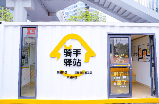 骑手驿站配备空调、微波炉、文娱设施等,向全行业骑手开放