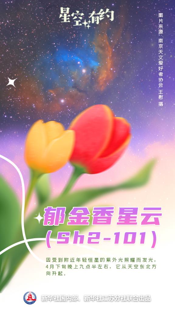 新华社南京4月26日电(记者王珏玢、邱冰清)绚烂春光里,赏花正当时。你知道吗?春季不仅地球上百花盛开,夜空“花园”里也“绽放”着不少以花、叶、蝶命名的绚丽星云,一起来看看吧!