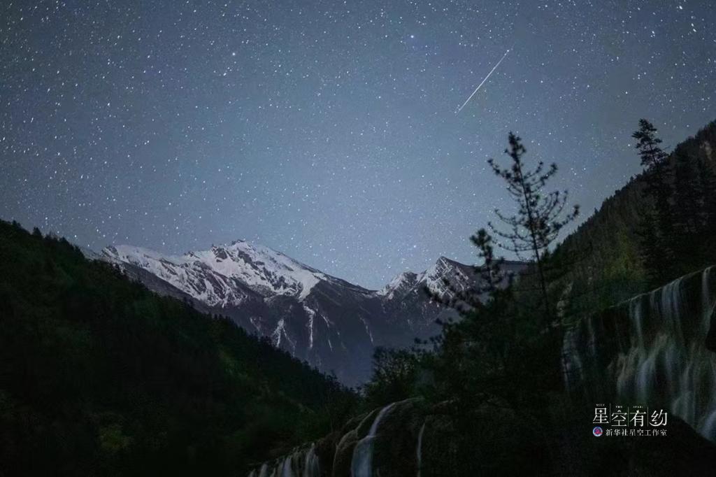 星空摄影师戴建峰2022年5月5日在四川九寨沟拍摄的宝瓶座η流星雨。(星联CSVA供图)
