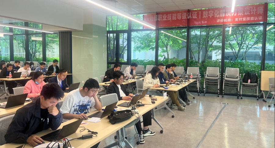 近日,150位在校大学生和职校生等年轻人来到位于杭州的蚂蚁A空间,参加了一场特别的职业技能等级认证考试。