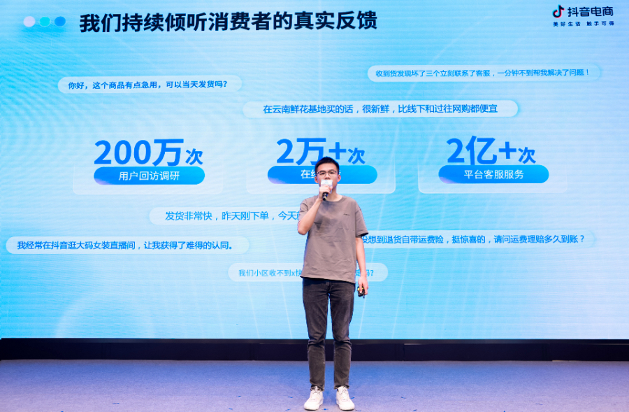 5月13日,抖音电商在北京举办“用户体验开放日”,邀请抖音电商业务相关负责人及媒体到场,分享过去一年平台在售后体验、客服体验以及平台治理等三方面的举措、成果与未来规划。抖音电商平台治理负责人马磊表示,从抖音做电商开始,平台始终将消费者体验放在首位,让用户放心看放心买。
