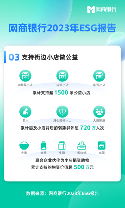 5月13日,网商银行发布2023年ESG报告(以下简称“报告”)。截至2023年底,该行已累计服务小微用户超5300万,在普惠金融、农村金融、绿色金融等核心领域持续创新,稳步增长。