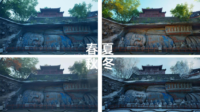 据项目相关人士介绍,《云游·大足石刻》基于毫米级的高精度数字孪生建模和实时云渲染技术,不仅精确记录了大足石刻的每尊雕像和景观,还为用户提供了8K影视级的视觉呈现和自由开放的探索路线。用户可以通过该线上场景自由在景区中游览。