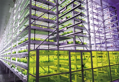“植物工厂展现了现代化农业的一个未来图景,它解决了劳动力成本高的问题,不‘靠天吃饭’,还可以提高土地资源利用率。”按王金龙的话讲,就是“向天空借空间”。“例如生菜及烹调类白菜等,从播种到采收不到40天,生长周期相较于土壤种植缩短三分之一,而且蔬菜是立体种植,可以全年连续生产,单位面积产量比传统田地农业生产多50倍。”王金龙说。