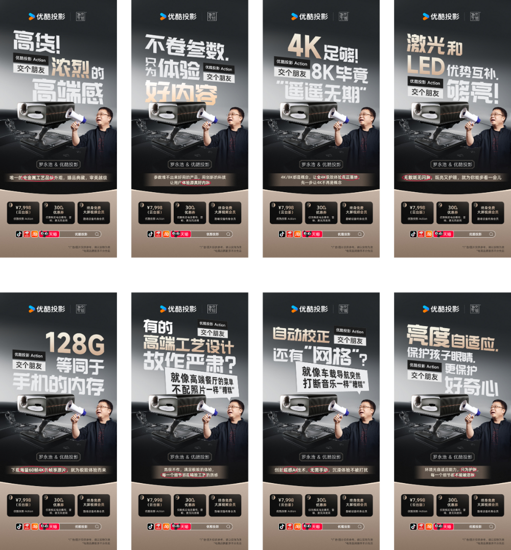 优酷投影Action通过极致的品质工艺和充满可探索性的黑科技,实现了行业断层性领先的表现,满足了追求极致品质生活的用户,也重新定义了投影仪选购标准。得到了大量影视行业导演、明星认可,导演宁浩表示:“优酷投影Action带来更沉浸的体验,传递我的所思所想。我真心希望电影作品可以被放大看,沉浸看!”,导演许宏宇认为:“Action是新鲜基因+科技想象力的结合。”,GAI周延更是期待粉丝、观众可以通过优酷投影Action 100%感受其在《说唱梦工厂》中的极致舞台。可以说在面对内容观看和播放需求最大,标准最高的群体时,优酷投影Action也凭借极具科技感的美学外观和强大的影音性能得到青睐。