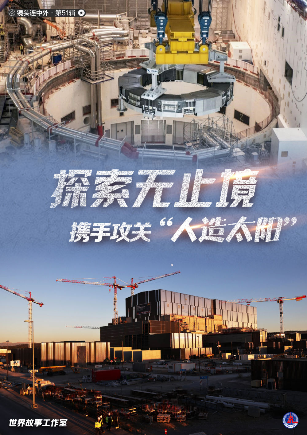 ↑在位于法国圣保罗-莱迪朗斯的国际热核聚变实验反应堆(ITER)的建造厂房外,中国、欧盟、印度、日本、韩国、俄罗斯、美国七个参与方的旗帜和ITER组织的旗帜迎风飘扬。