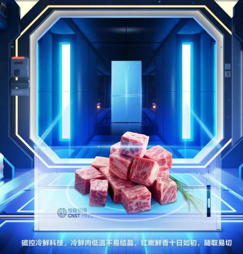 以磁控冷鲜科技为例,海尔冰箱通过恒定均匀磁场,使大水分子团分解为小分子团,防止冰晶生成,保持肉的细胞完整,实现冷鲜肉红嫩鲜香,十日如初,汁液0流失,鲜味物质谷氨酸留存率提升1倍,还能让用户能随用随取,方便易切。