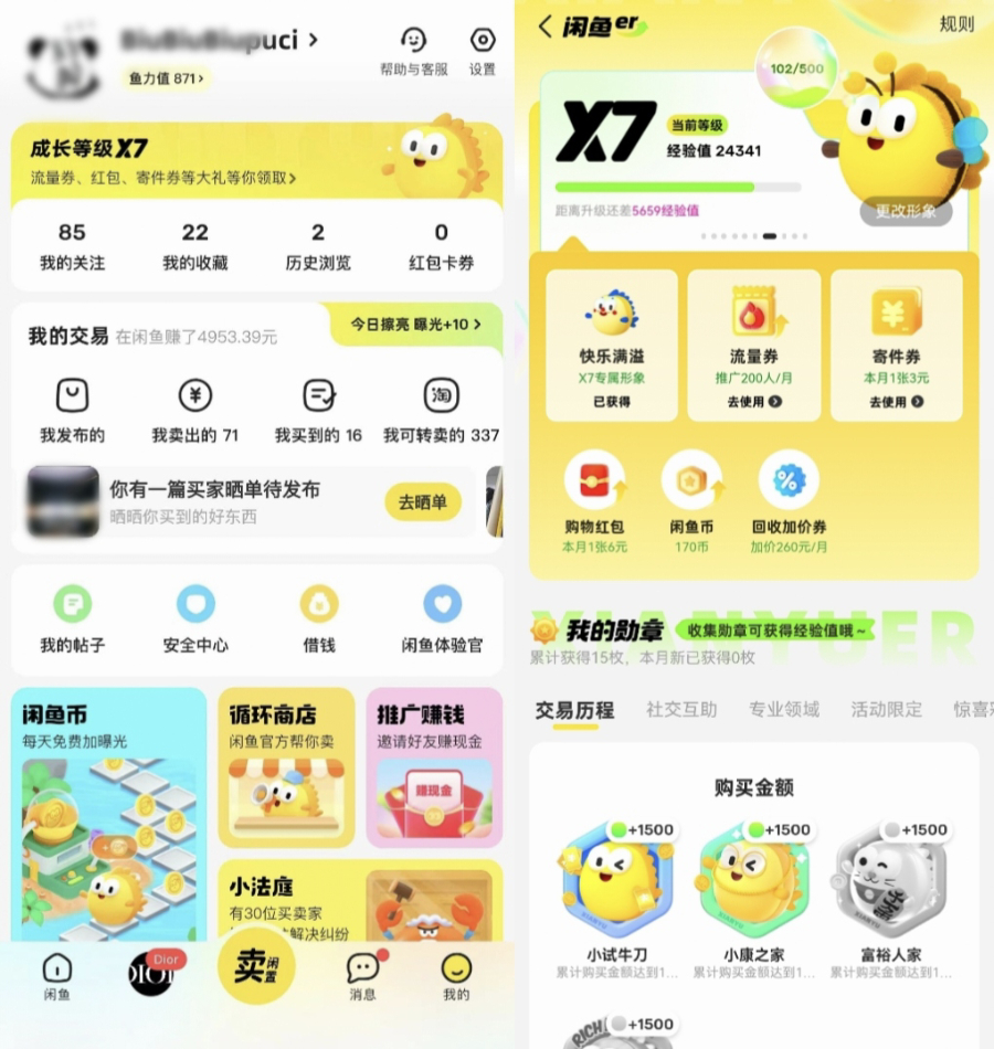 近期,部分网友惊奇地发现,闲鱼的个人账户主页突然多出了一个名为“成长等级”的入口,占据了个人主页的重要位置。