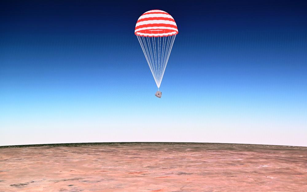 6月25日14时7分,嫦娥六号返回器携带来自月背的月球样品安全着陆在内蒙古四子王旗预定区域,探月工程嫦娥六号任务取得圆满成功。新华社记者 连振 摄