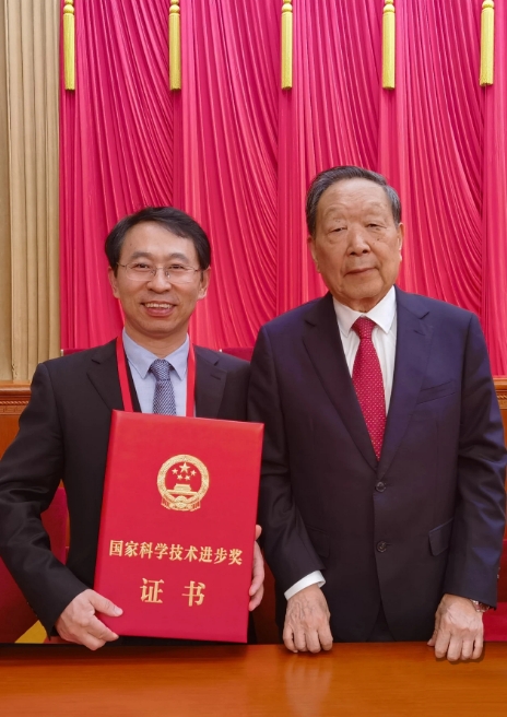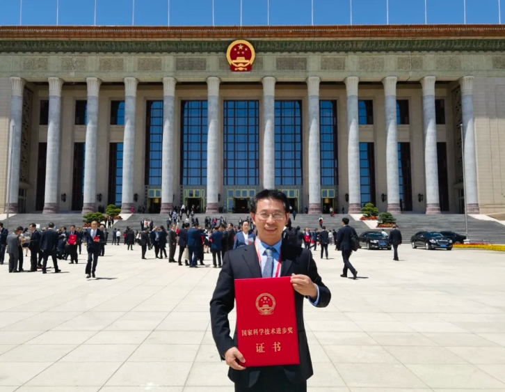 谭先杰获得国家科学技术进步奖二等奖后,在人民大会堂前留影。(作者供图)