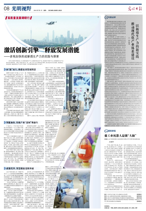 高质量发展是新时代的硬道理,发展新质生产力是推动高质量发展的内在要求和重要着力点。当前,我国经济体量已达到相当水平,经济发展已由量的合理增长向质的有效提升转变。随着科技的发展进步,广东、上海、江苏、辽宁等地的新质生产力实践探索不断丰富,在传统产业升级、智能制造、数字经济、绿色节能等现代化产业领域大放异彩。