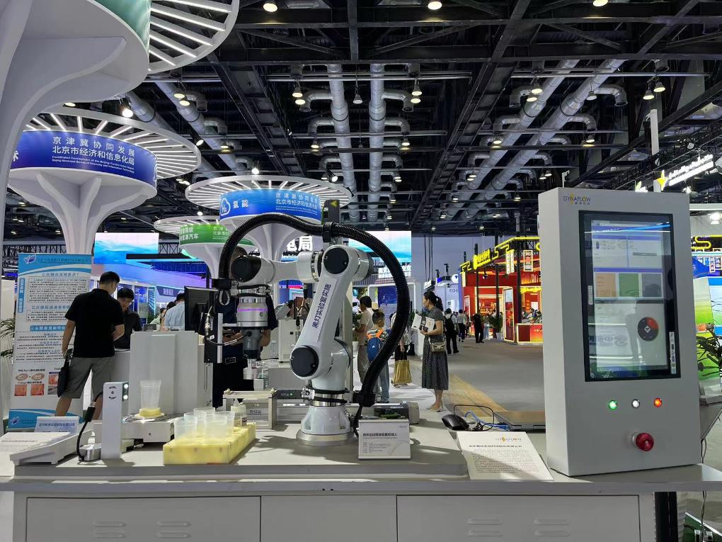 7月15日,在北京科博会上,企业展出的液体自动精准称重机器人。新华社记者 阳娜 摄