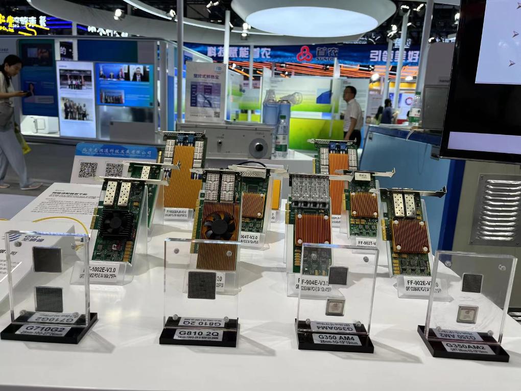 7月15日,在北京科博会上,企业展出的网卡、模块和芯片等产品。新华社记者 阳娜 摄