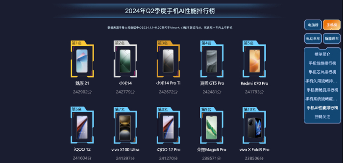 2024年Q2的智能手机市场,是全面向AI手机转型的大阶段,仅短短半年的时间,智能手机市场几乎已经达到了AI手机的新品全覆盖。与此同时,随着24年Q2的结束,各厂商本世代的顶级旗舰产品纷纷发布完毕,其中依旧是影像旗舰占大多数,并且AI手机表现强势,AI与影像结合的体验稳中向好持续走高。