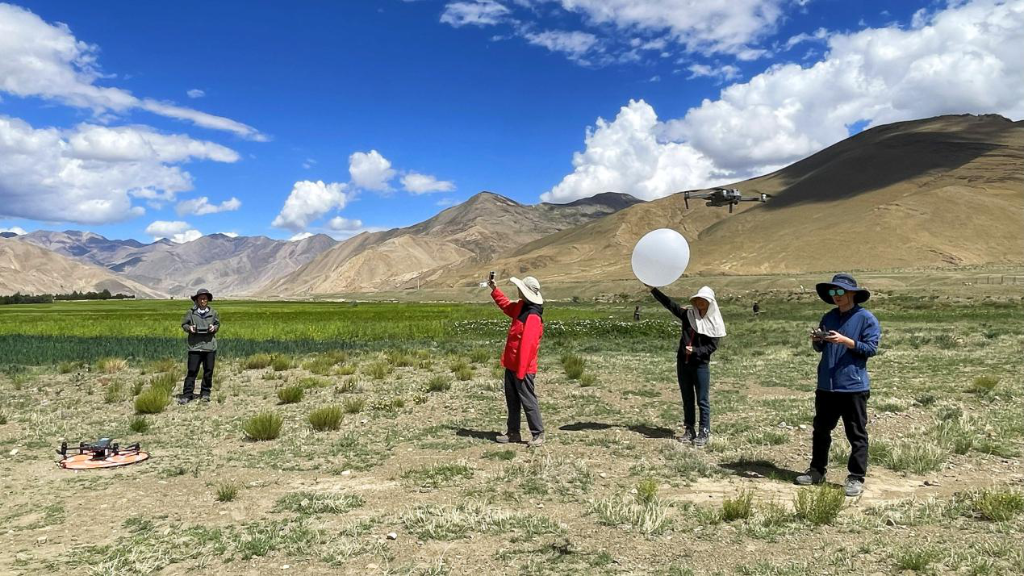 团队开展探空气球大气廓线观测和无人机热红外影像获取。(中国科学院空天信息创新研究院供图)