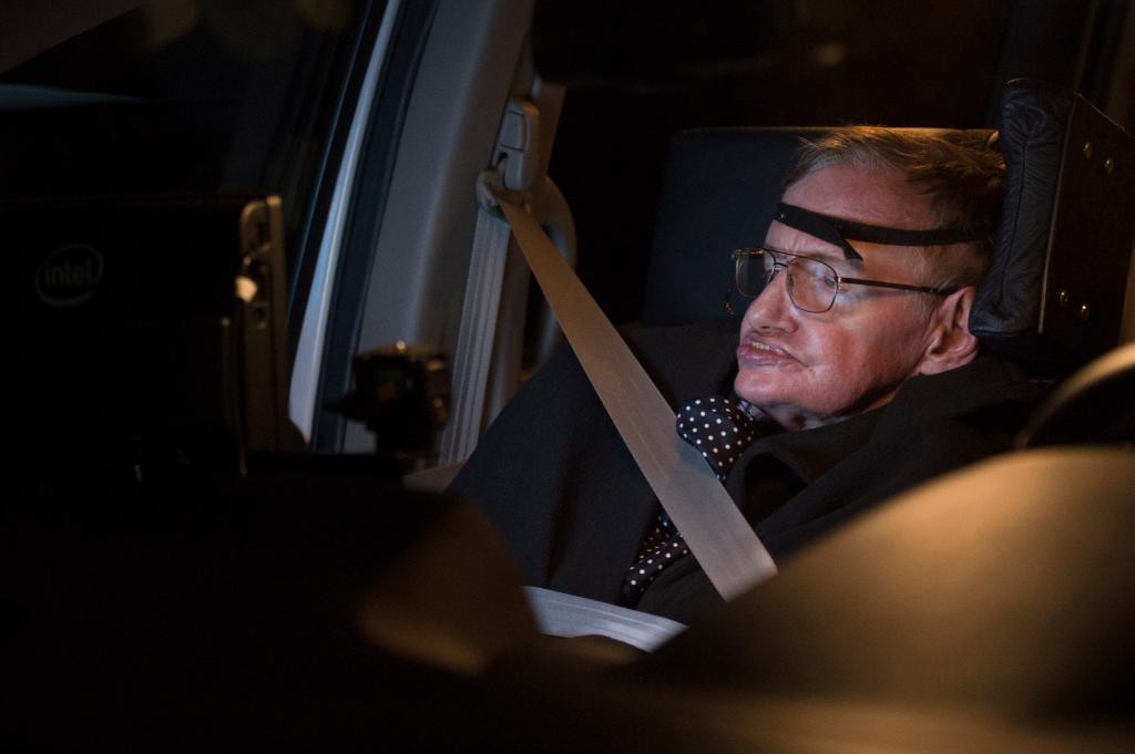2013年4月16日晚,著名物理学家霍金在美国加州理工学院利用传感器发出的电脑合成音公开演讲。上千名专家、学者和民众聆听他讲述“宇宙起源”的故事。新华社记者杨磊摄