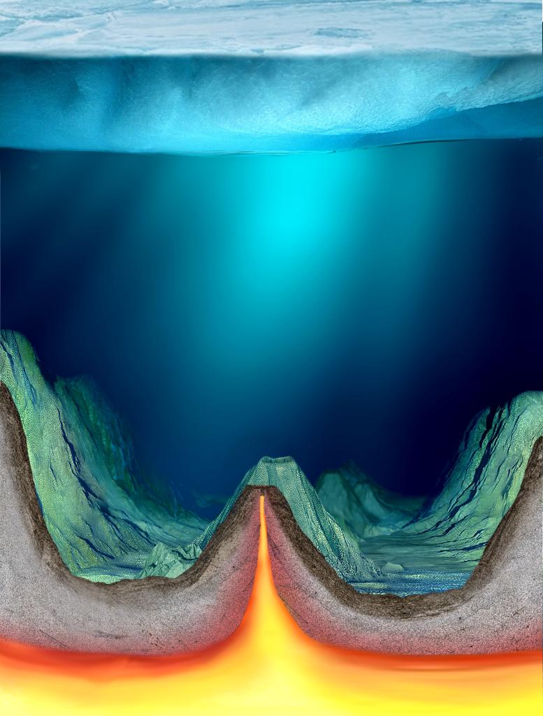冰下海底强烈火山活动和岩浆供给示意图。(自然资源部第二海洋研究所供图)