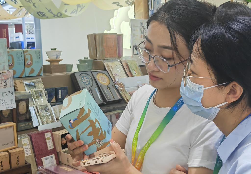 观众在“博博会”上选购文创产品。新华社记者 哈丽娜 摄