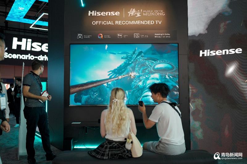 在家居场景,海信为大屏电视游戏和影音娱乐爱好者量身定制的《黑神话:悟空》联名款电视,吸引众多海外玩家闯关体验。为了精准呈现这部3A游戏大作的电影级画质,海信和黑神话美术团队联合定制了专属游戏模式,通过XDR高动态调优、精准色彩调校和暗部细节增强,完美还原各种细节,将游戏体验提升到极致。