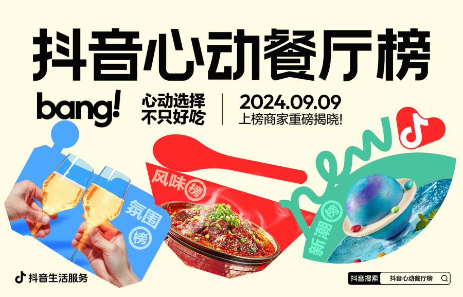 9月9日,抖音生活服务平台正式上线“抖音心动餐厅榜”,下设风味榜、氛围榜、新潮榜三个子榜单,推荐不同主题特色好店,满足餐饮消费多元需求。
