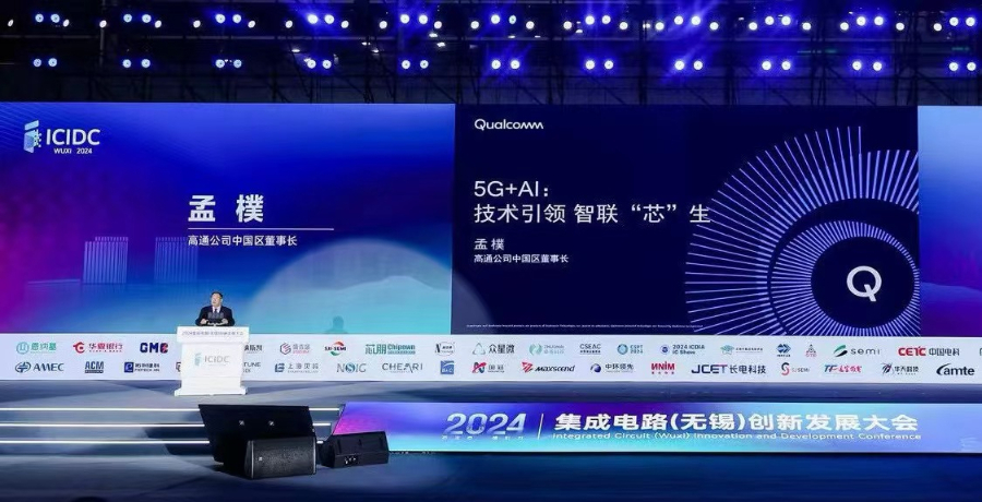图为高通公司中国区董事长孟樸在2024集成电路(无锡)创新发展大会开幕式上发表主题演讲