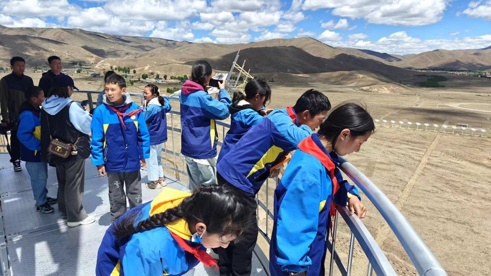 5月30日,当地学生在“千眼天珠”定标塔上参观研学。新华社发(受访者供图)