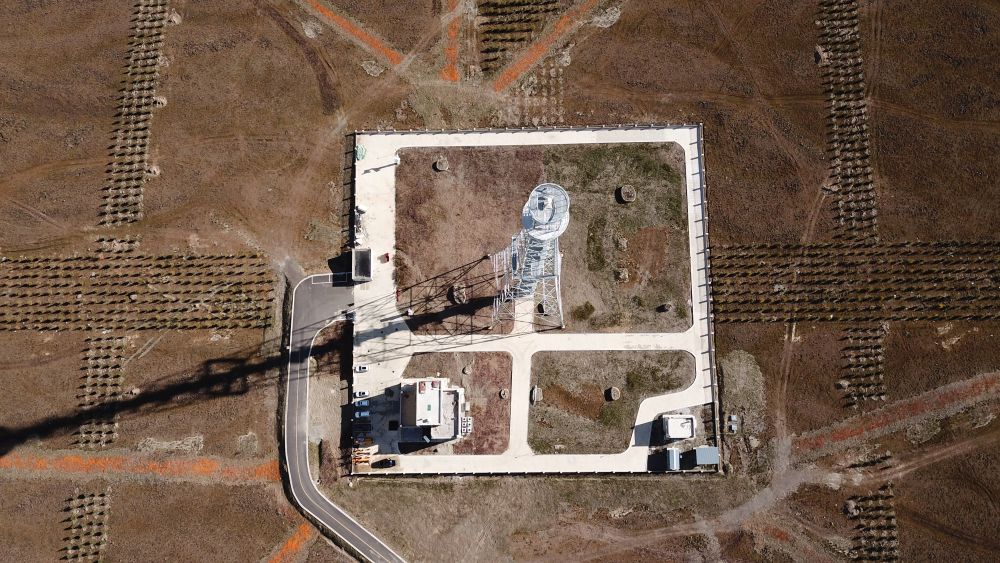 这是9月18日拍摄的“千眼天珠”定标塔(无人机照片)。新华社记者 金立旺 摄