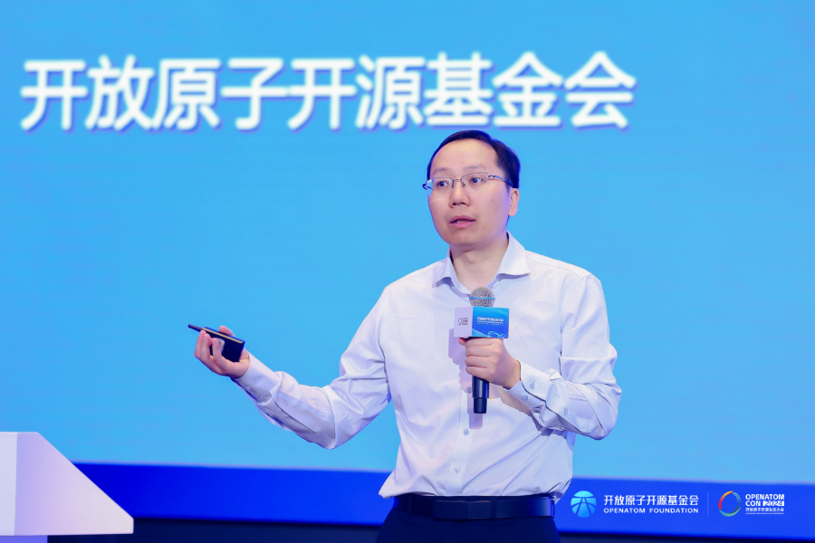 OpenHarmony项目群技术指导委员会主席陈海波做了题为《万物智联时代的OpenHarmony技术与生态》的主题演讲。他分享了对智能终端操作系统在终端产业中所起到中枢作用的洞察,展望了万物智联时代智能终端操作系统的发展趋势,如泛在化、场景化、智能化等。同时,他还介绍了OpenHarmony关键技术创新进展,包括元OS架构、高可靠高性能并发VSync、高性能只读压缩文件系统EROFS、可信执行环境OpenTrustee、仓颉编程语言等。他表示,OpenHarmony带动终端产业链协同发展,成立了约30家高校技术俱乐部开展产学研协同,已经成为发展速度最快的智能终端操作系统根社区。此外,他还从根社区发展、竞争力换道超车、产业链闭环等方面为我国开源软件生态发展建言献策。
