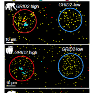 值得一提的是,研究人员发现灵长类的浦肯野细胞进化出了特有的亚型,分别高表达和低表达GRID2基因,而鼠类小脑浦肯野细胞中GRID2的表达相对均一。灵长类特有的浦肯野细胞亚型在诱导长时程抑制相关基因表达上有显著差异,预示着其在突出可塑性和学习记忆过程中的功能差异。