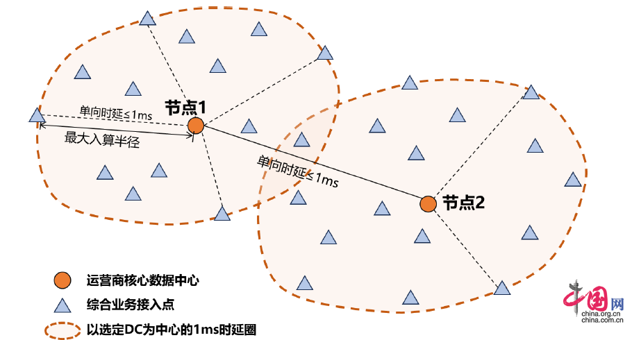 ·指标2:城市内基础电信企业的各核心数据中心节点1ms时延圈所覆盖的综合接入点数量之和占所在城市综合接入点数量总和的比例≥60%。