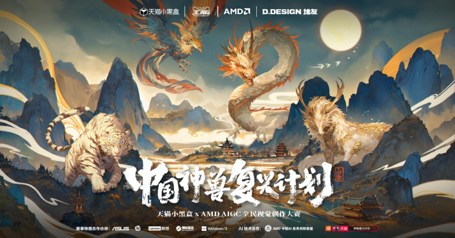 《山海经》作为中国古代的一部奇书,其内容涵盖了地理、动植物、神话传说等多方面的信息,展现了古代中国人丰富的想象力和深邃的文化内涵。《山海经》不仅是了解古代自然与社会的重要文本,更是探索中华民族文化的重要窗口。而优秀传统文化的创新表达知易行难,是一条考验认知、考验审美、考验技术的路。为将《山海经》的魅力以现代方式表述,天猫小黑盒与AMD携手,联合天猫3C数码、华硕、惠普、联想、机械革命和Windows 11发起“中国神兽复兴计划”AIGC全民视觉创作大赛,并特邀中央美术学院摄影教授、博士生导师王川作为活动特别文化指导,利用新的AI科技将中国传统文化呈现在世人面前。