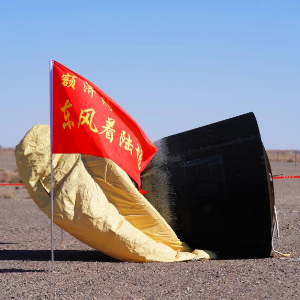 记者从国家航天局获悉,10月11日10时39分,我国在东风着陆场成功回收首颗可重复使用返回式技术试验卫星——实践十九号卫星,搭载的植物及微生物育种载荷、自主可控和新技术验证试验载荷、空间科学实验载荷、社会公益和文化创意载荷等回收类载荷已全部顺利回收。新华社发(王衡摄)