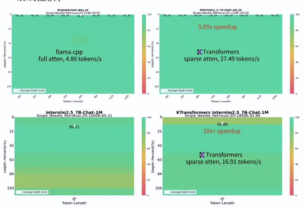 此前,趋境科技与清华KVCache.AI团队合作,开源了一部分异构推理框架,项目名为“KTransformers”。该开源框架仅需单个消费级GPU即可在本地运行Mixtral 8x22B和DeepSeek-Coder-V2等千亿级大模型,性能数倍于Llama.cpp。在长达1M的超长上下文推理任务中,成为业界首个仅需单GPU卡的高性能推理框架,生成速度达到16.91 token/s,比Llama.cpp快10倍以上,同时维持接近满分的“大海捞针”能力。
