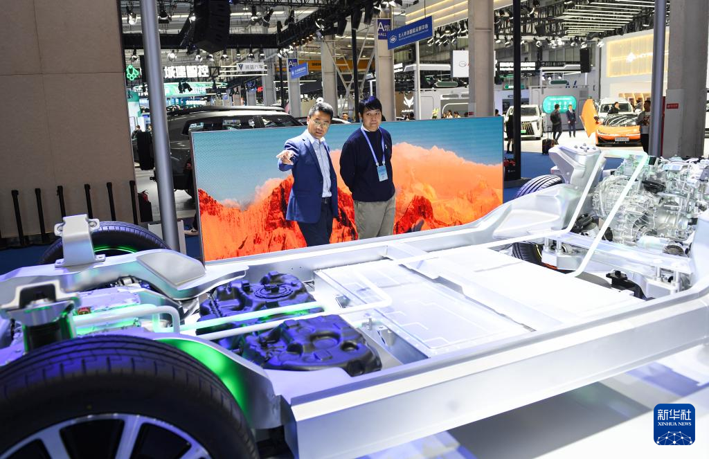 10月17日,参会者在问界汽车展台了解其“赛力斯魔方平台”相关技术特点。